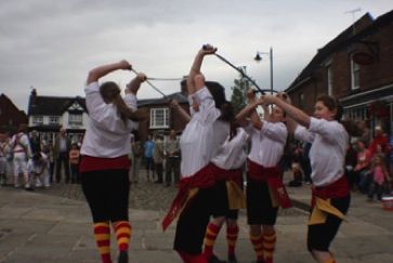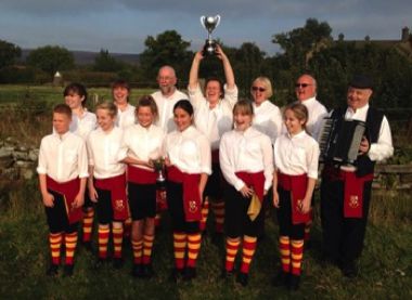 2011 – If we thought 2010 was busy, this year was even more so! We were honoured to have a new patron, The Earl of Scarborough, who has been a keen supporter since then. Demon Barbers that year saw the Nestlings Rapper for the first time. Lord Scarbrough came with us and presented the prizes. Then we did DERT at Oxford with two teams! Once again we were invited to Wath May Weekend. We were once again asked to perform at Beverley Folk Festival as well as at Warwick in July! This was the year of the stripey sock! It was also the year of the adult team! We had two teams at the SDU Tournament and our Nestlings won the Best Youth Team Trophy! We had a great day with the adult team and the teenage team combining at Sandbach Day of Dance as well as at Otley Folk Festival. Once again we danced at Grenoside’s Annual Dance on Boxing Day.